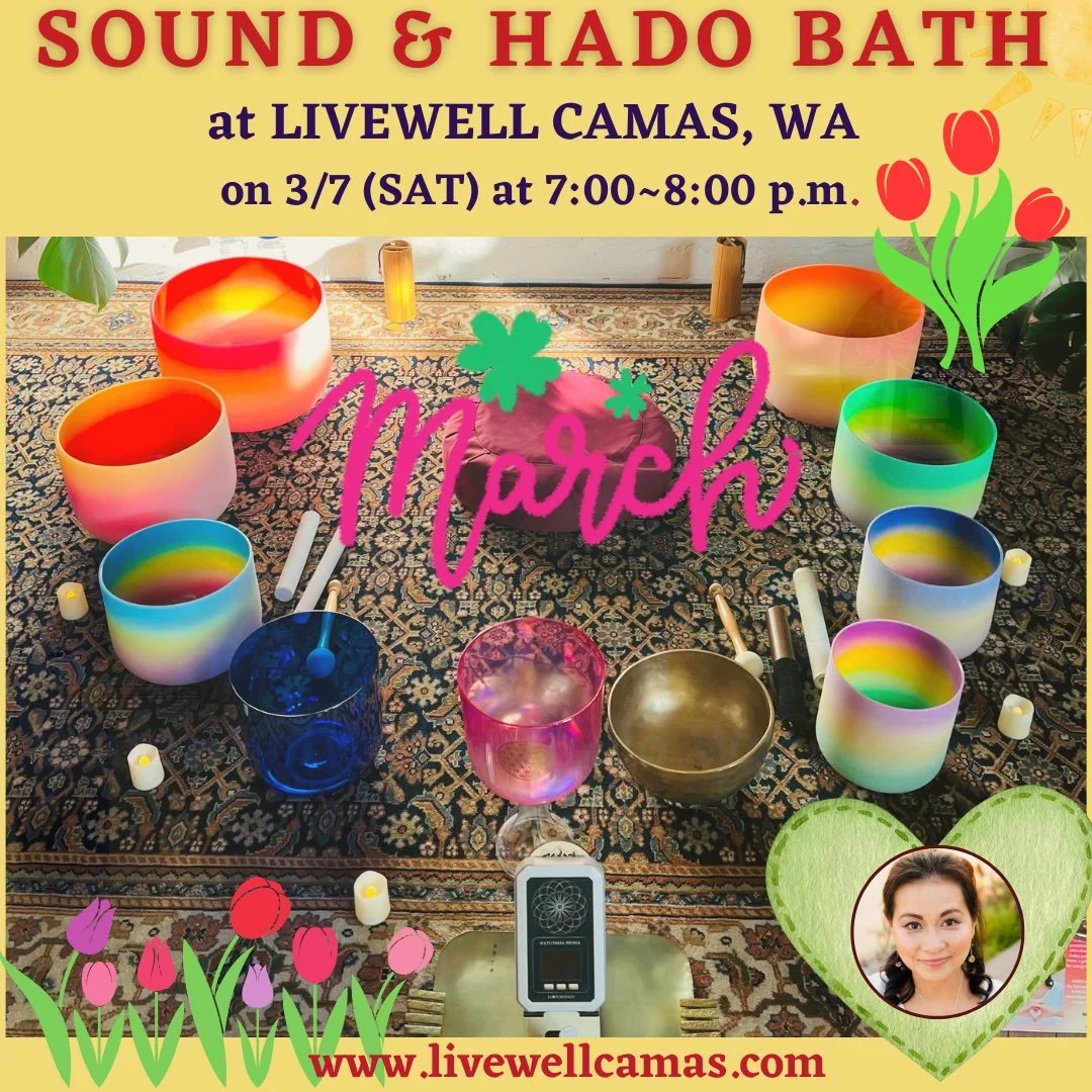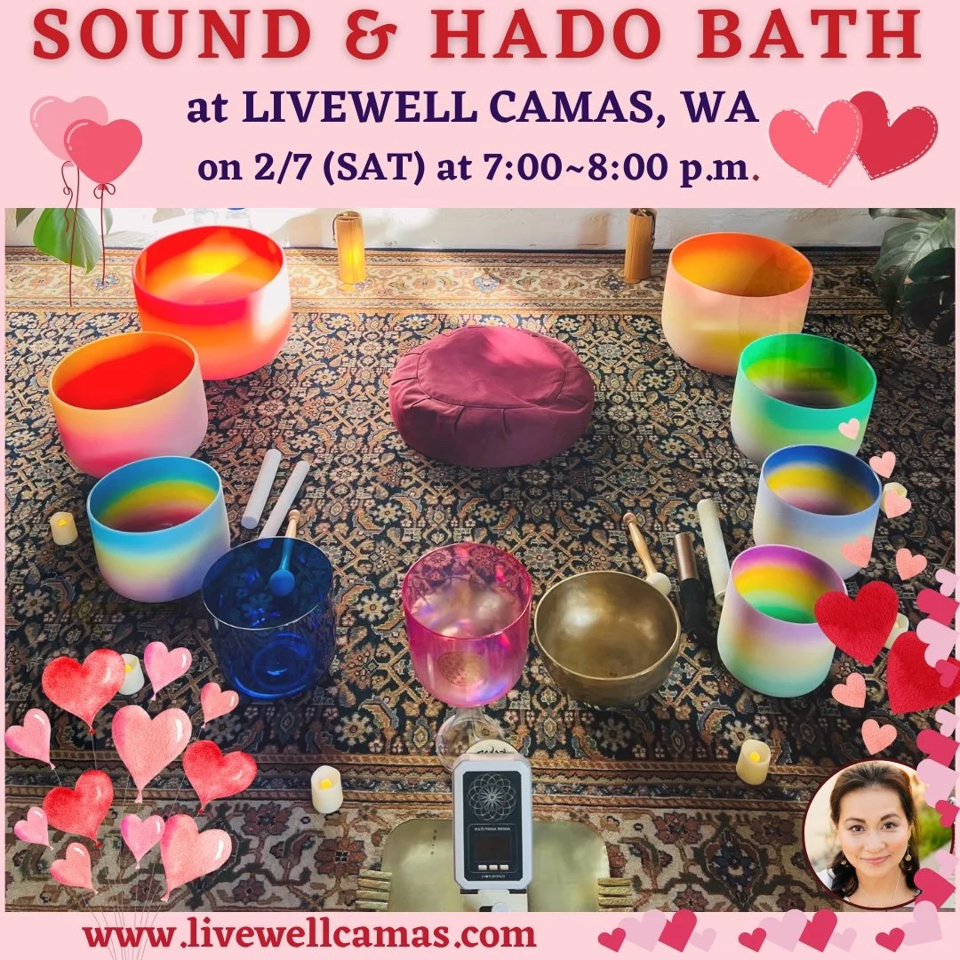 Experience the transformative power of sound healing with the Hado Healing Sound Bath at LiveWell Camas. This unique session combines crystal singing bowls, gongs, Tibetan singing bowls, and Hado Healing Technology to promote deep relaxation, energetic balance, and rejuvenation. Led by Hiroko, the only practitioner in the world using Hado vibrations in sound therapy. Reserve your spot today!