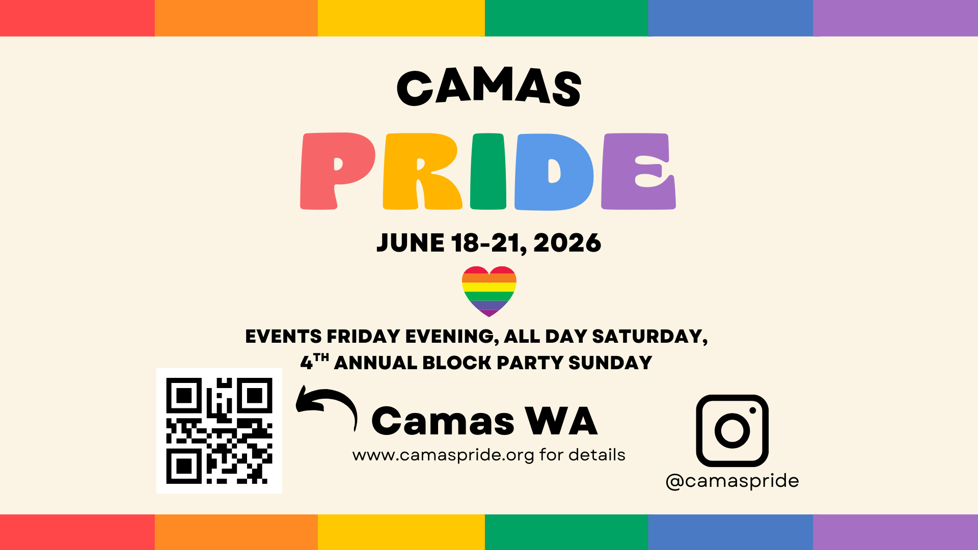 Camas PRIDE is an opportunity to have a whole lot of fun and to celebrate with you all! This is an all-ages family-friendly event full of many ways to express yourself, access resources and build community.